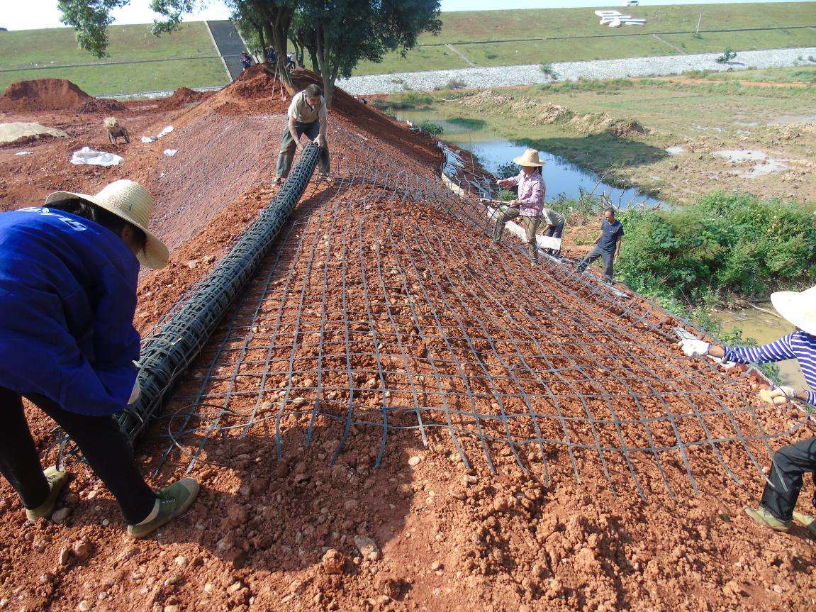 土工格柵(geogrid)是一種主要的土工合成材料,與其他土工合成材料相比,它具有獨(dú)特的性能與功效。常用作加筋土結(jié)構(gòu)的筋材或復(fù)合材料的筋材等。 土工格柵分為塑料土工格柵、鋼塑土工格柵、玻璃纖維土工格柵和聚酯經(jīng)編滌綸土工格柵四大類(lèi)。格柵是用聚丙烯、聚氯乙烯等高分子聚合物經(jīng)熱塑或模壓而成的二維網(wǎng)格狀或具有一定高度的三維立體網(wǎng)格屏柵,當(dāng)作為土木工程使用時(shí),稱(chēng)為土工格柵。 特點(diǎn) 強(qiáng)度大、蠕變小、適應(yīng)各類(lèi)環(huán)境土壤,完全可以滿(mǎn)足高等級(jí)公路中的高大擋墻使用。 能有效的提高加筋承載面的嵌鎖、咬合作用、極大程度的增強(qiáng)地基的承載力、有效的約束土體的側(cè)向位移,增強(qiáng)地基穩(wěn)固性能。 與傳統(tǒng)格柵相比更具有強(qiáng)度大、承載力強(qiáng)、抗腐蝕、防老化、摩擦系數(shù)大、孔眼均勻、施工方便、使用壽命長(zhǎng)等特點(diǎn)。 更適應(yīng)于深海作業(yè)、堤岸加固,從根本上解決了其他材料做石籠因長(zhǎng)期受海水沖蝕而造成的強(qiáng)度低、耐腐蝕性能差、使用壽命短等技術(shù)難題。 能有效的避免在施工過(guò)程中被機(jī)具碾壓、破壞而造成的施工損傷 應(yīng)用領(lǐng)域 適用于各種公路、鐵路、機(jī)場(chǎng)的路基增強(qiáng)路面增強(qiáng)。 適用于大型停車(chē)場(chǎng)和碼頭貨場(chǎng)等永久性承載的地基增強(qiáng)。 適用鐵路、公路的邊坡防護(hù)。 適用的涵洞增強(qiáng)。 適用于單向拉伸土工格柵增強(qiáng)后的土坡的二次增強(qiáng),進(jìn)一步增強(qiáng)土坡,防止水土流失。 礦山、坑道加固。